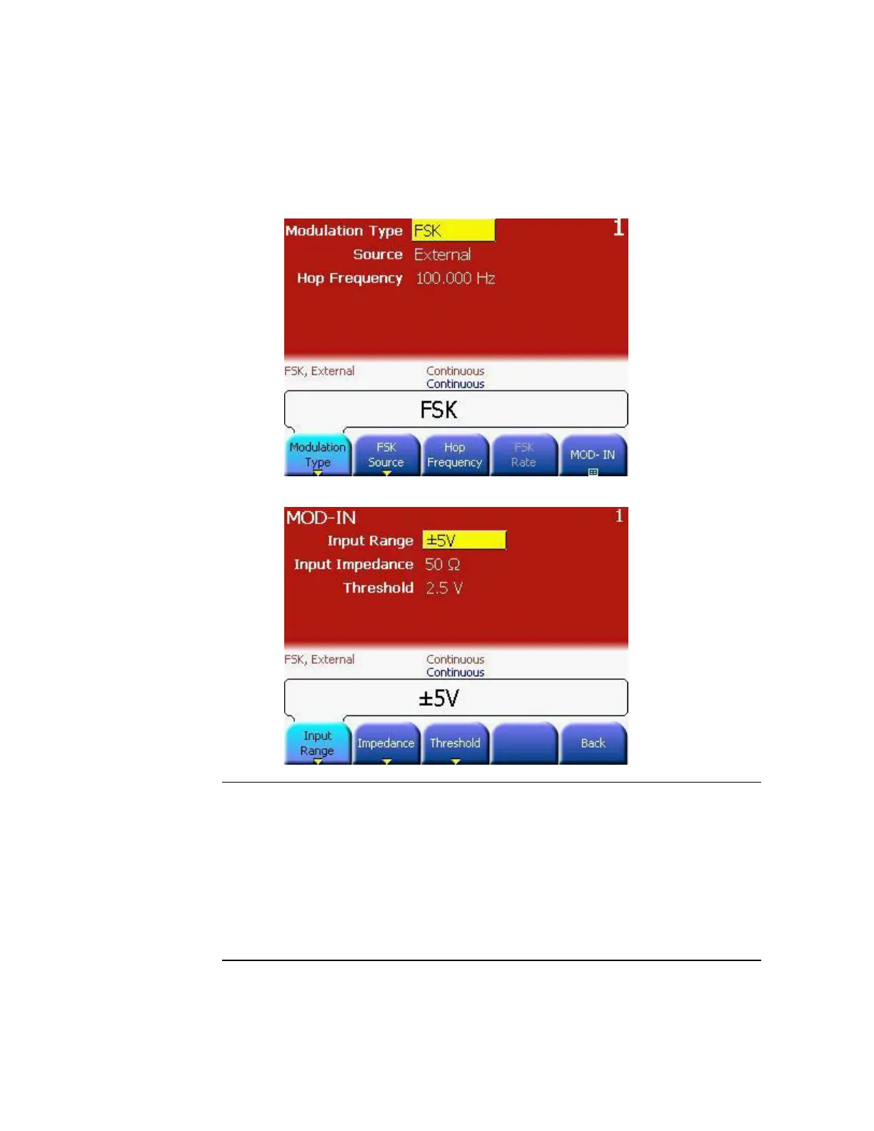 Press the MOD-IN softkey to go to the Modulation In screen.