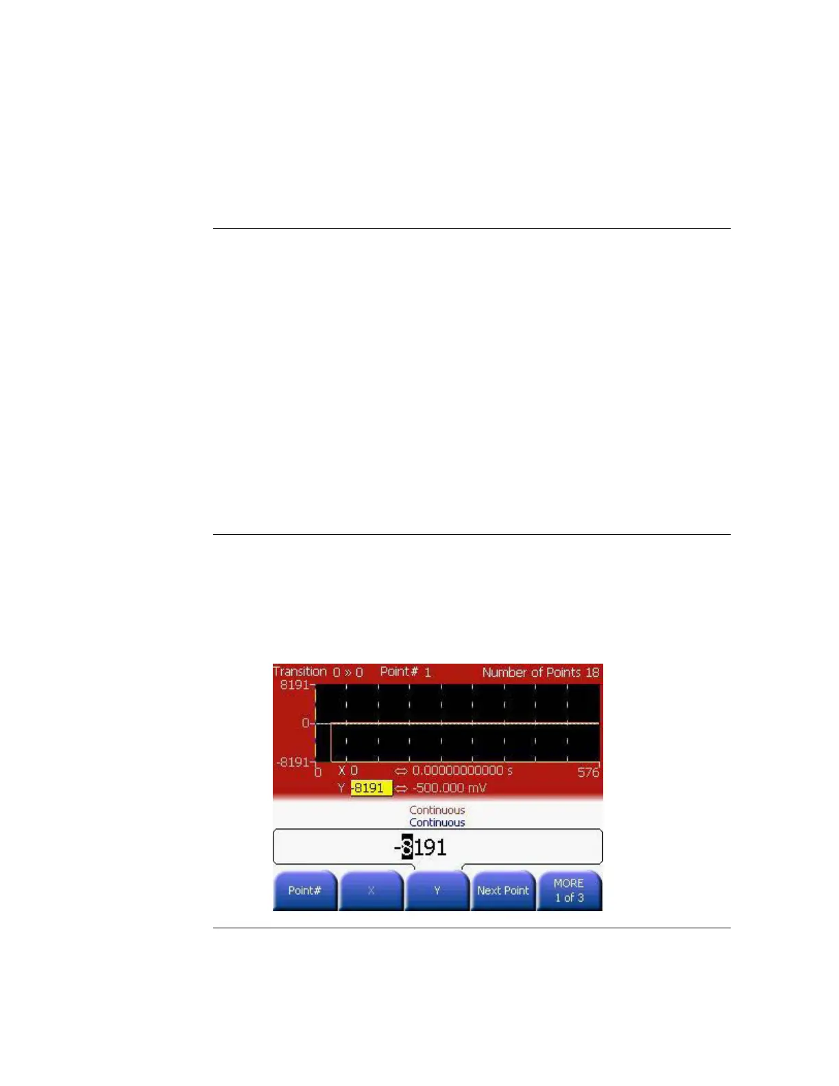 Press Y softkey to set the voltage level for Point #1 (this point is fixed at