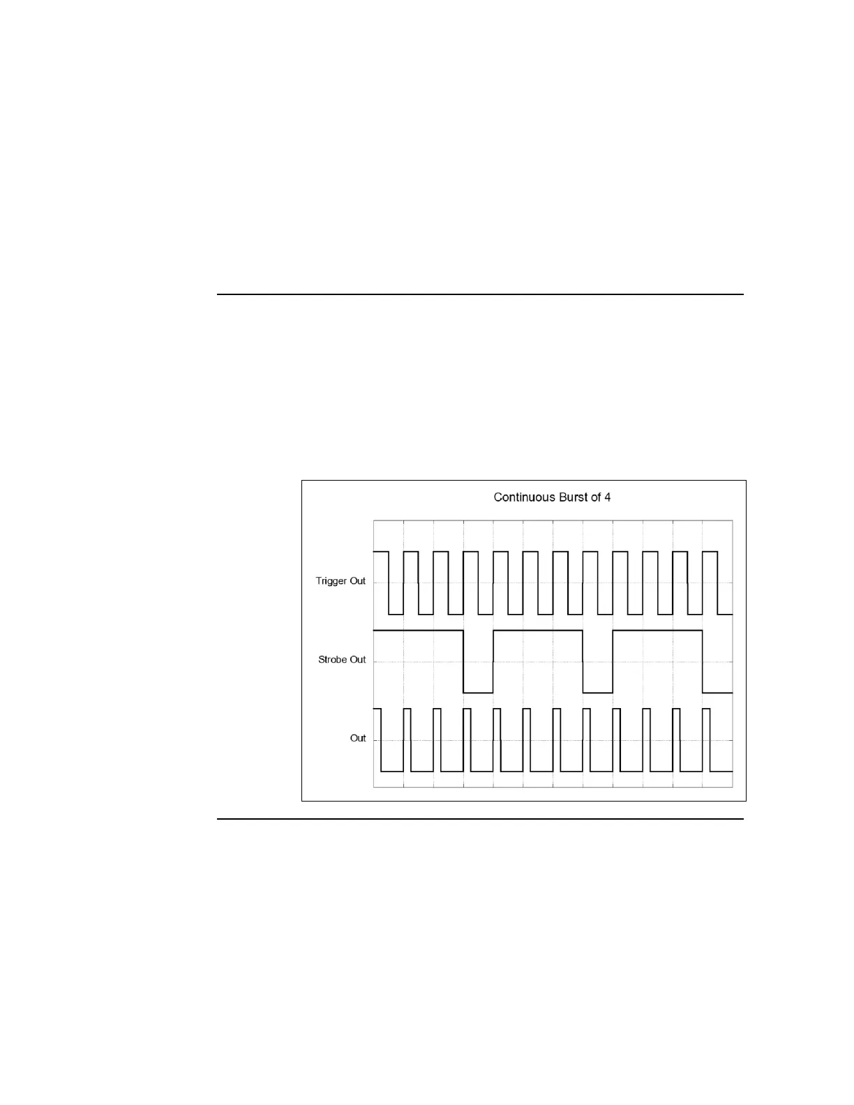 The following figure shows typical timings for trigger mode Continuous and