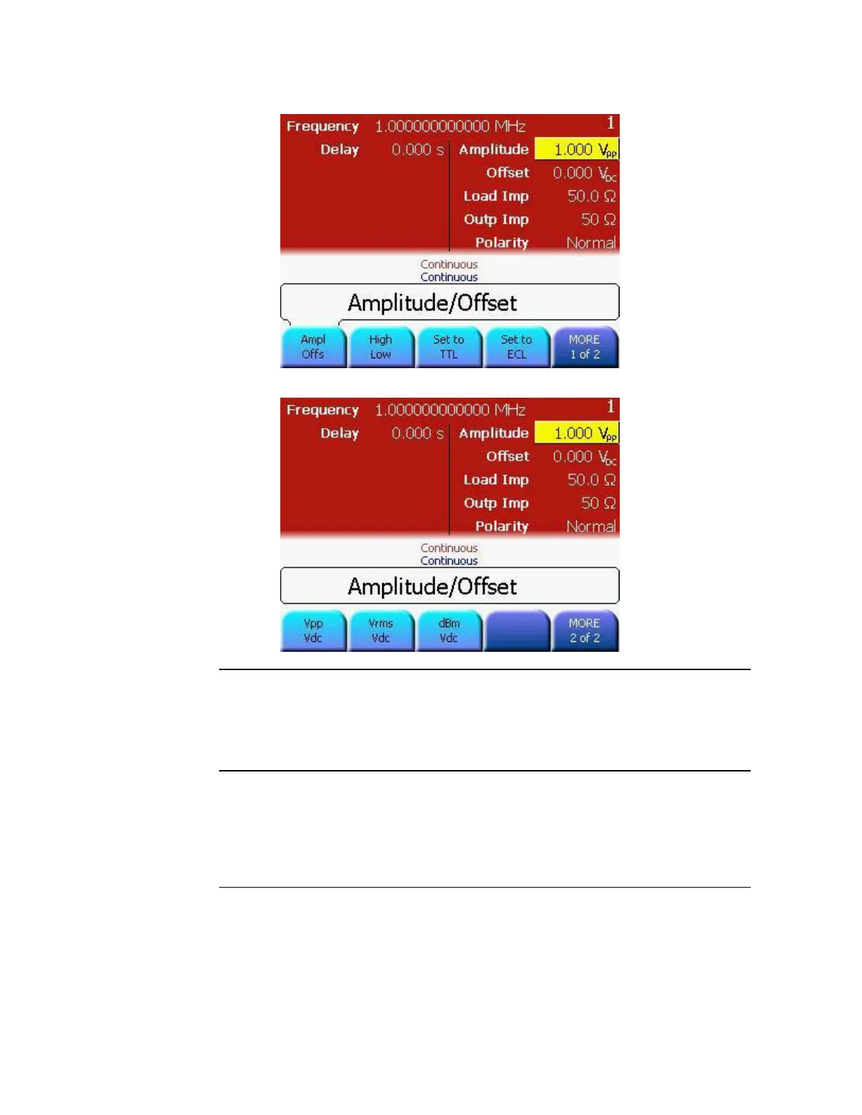 displayed amplitude (if the output is enabled). For this example, press mVrms.