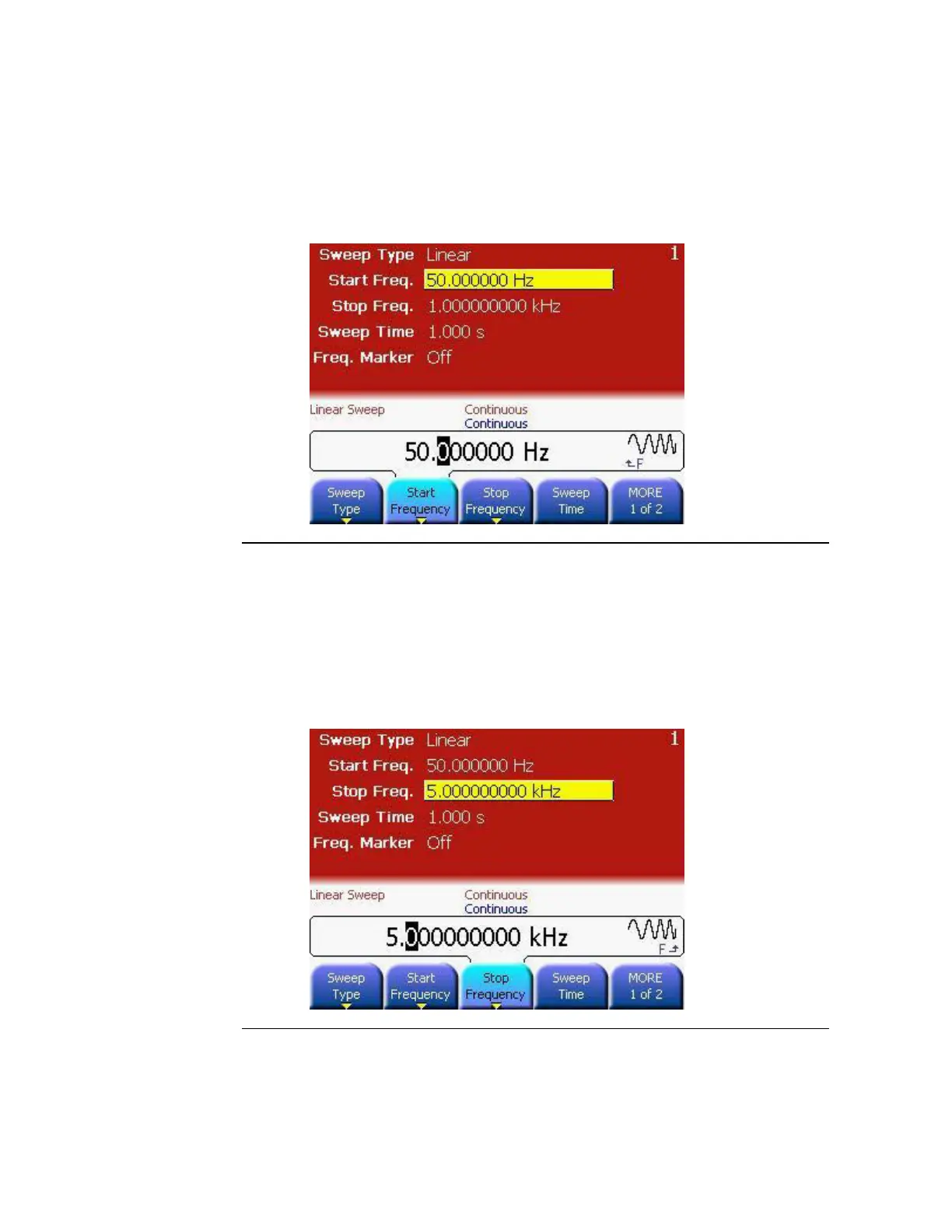 Press the Start Frequency softkey and then set the value to 50 Hz using the