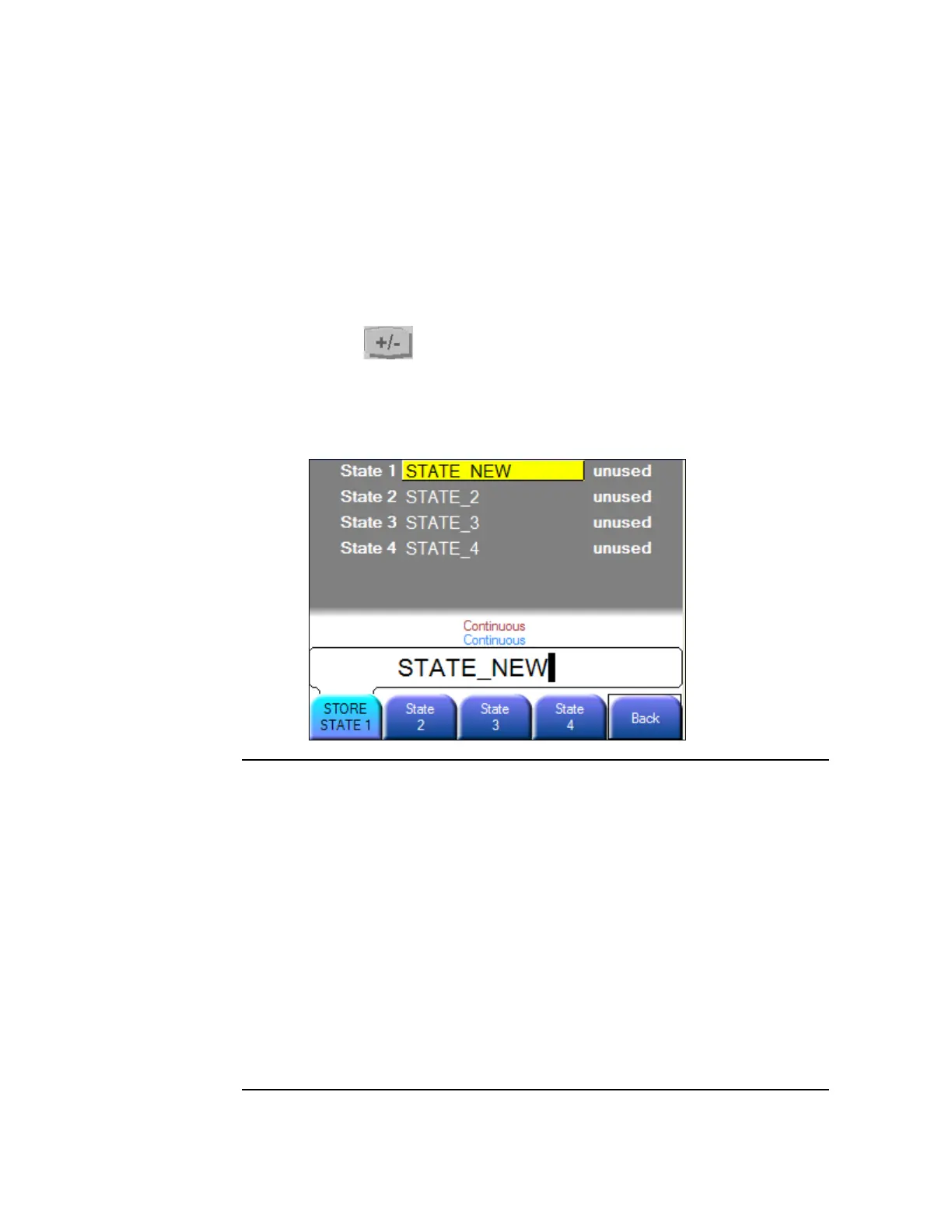 Press the STORE STATE softkey. The softkeys for each of these states, i.e.,