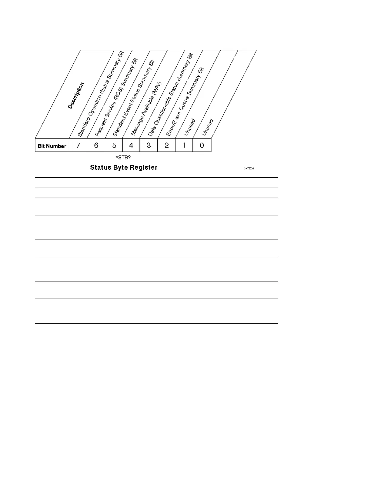 To query the status byte register, send the command *STB? The response will be the decimal sum of the