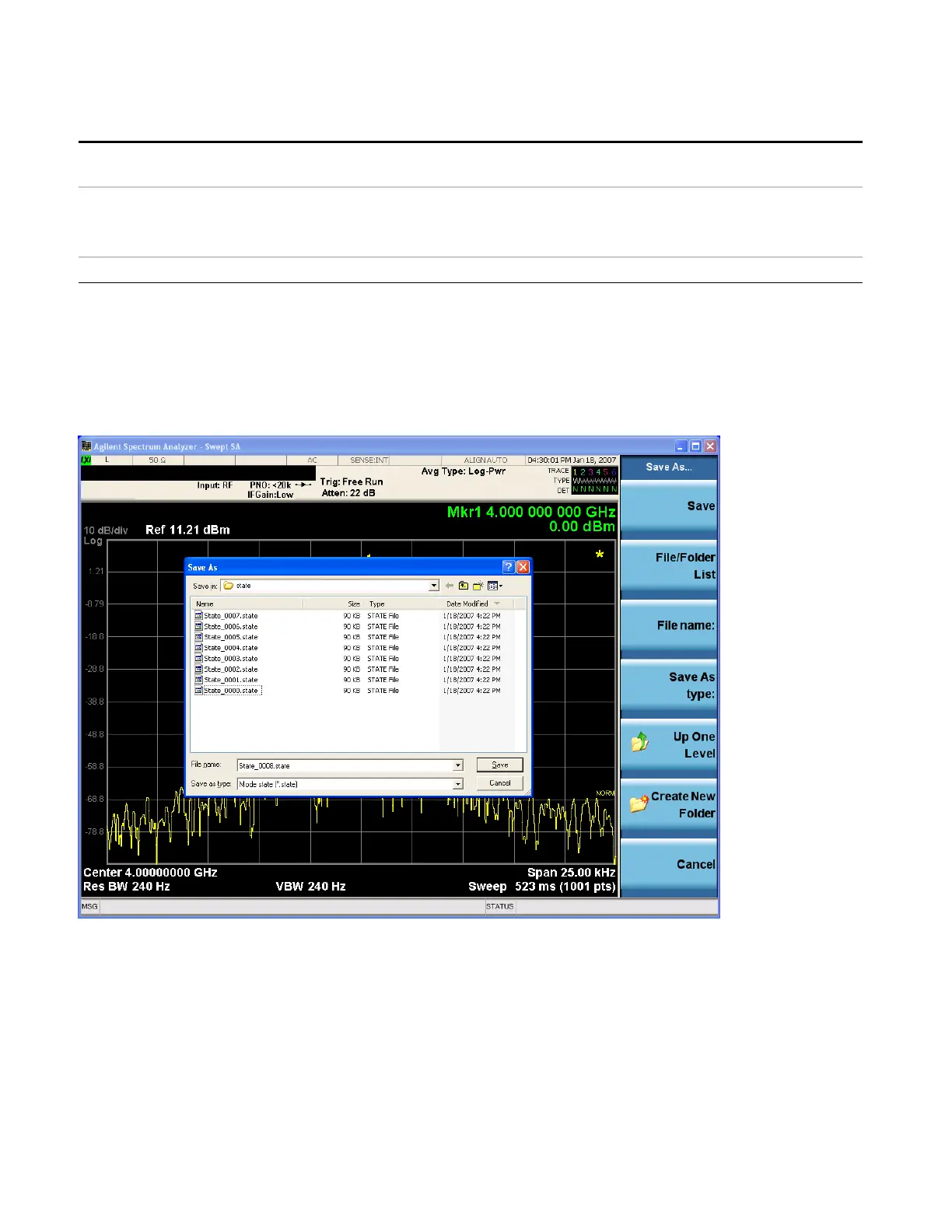 update. After saving to a file, the analyzer automatically returns to the previous menu and any Save