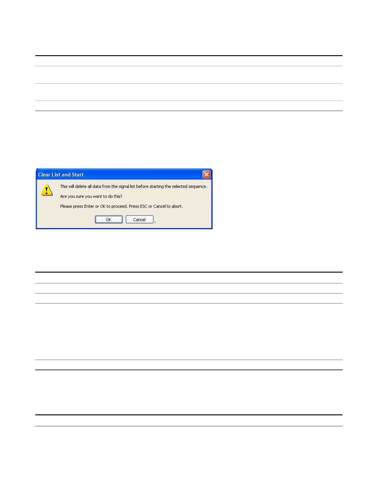 1. Prompt you for confirmation to delete all signals in signal list with the following message: