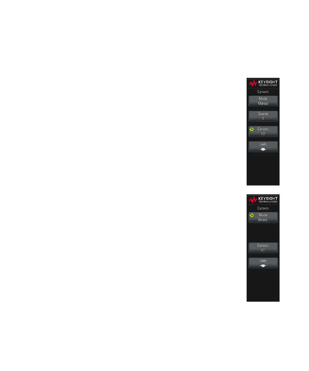 • Manual — ΔX, 1/ΔX, and ΔY values are displayed. ΔX is the difference