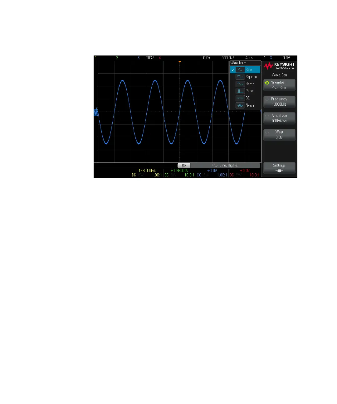 3 Depending on the selected waveform type, use the remaining softkeys and the