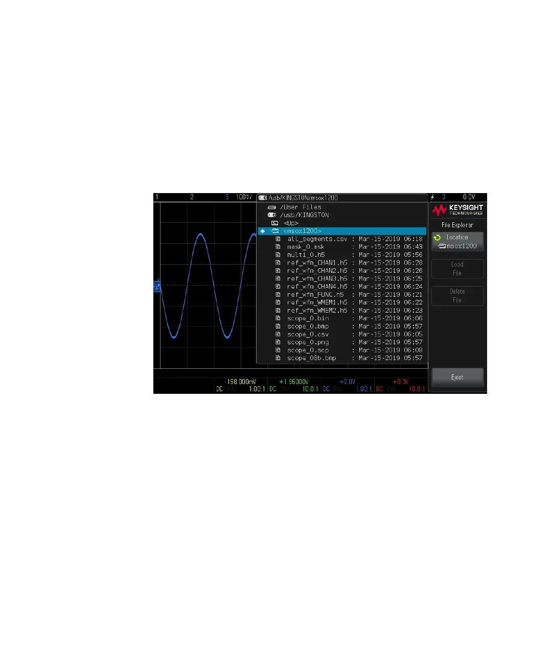The oscilloscope's internal file system, under "/User Files", consists of 10 locations