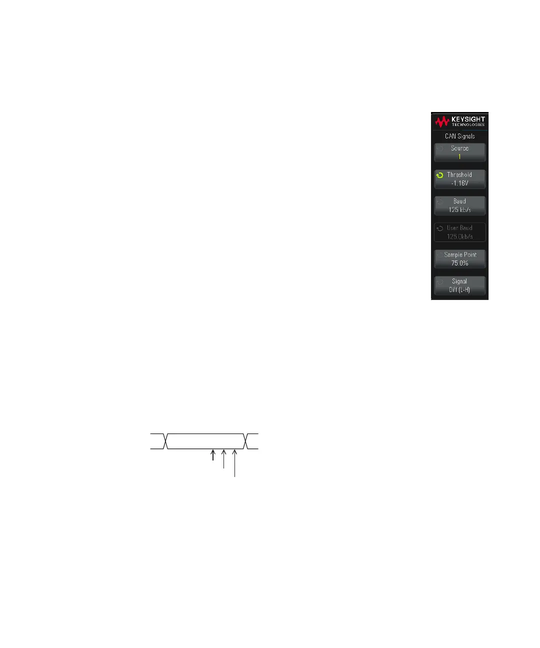 11 Press the Signal softkey and select the type and polarity of the CAN signal. This