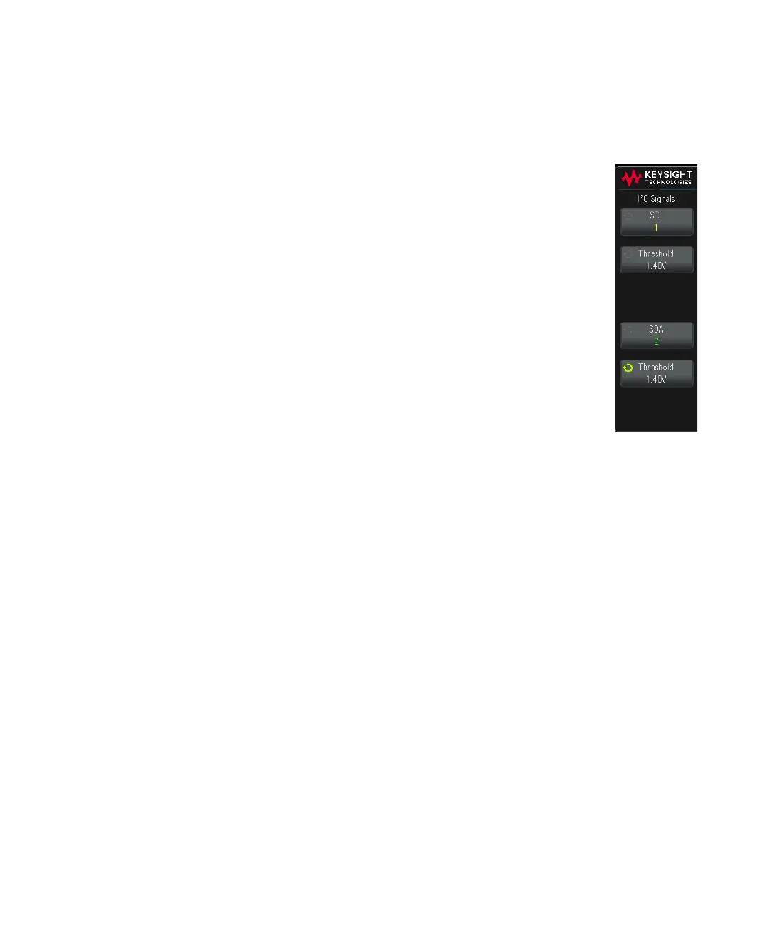 To set up the oscilloscope to capture I2C signals, see "Setup for I2C Signals" on