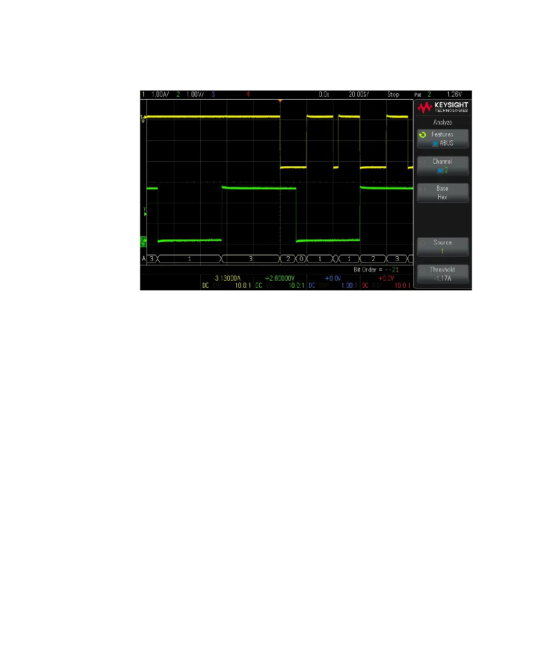 bus waveforms (if present). Channel 1 is the least significant bit and channel 4 is