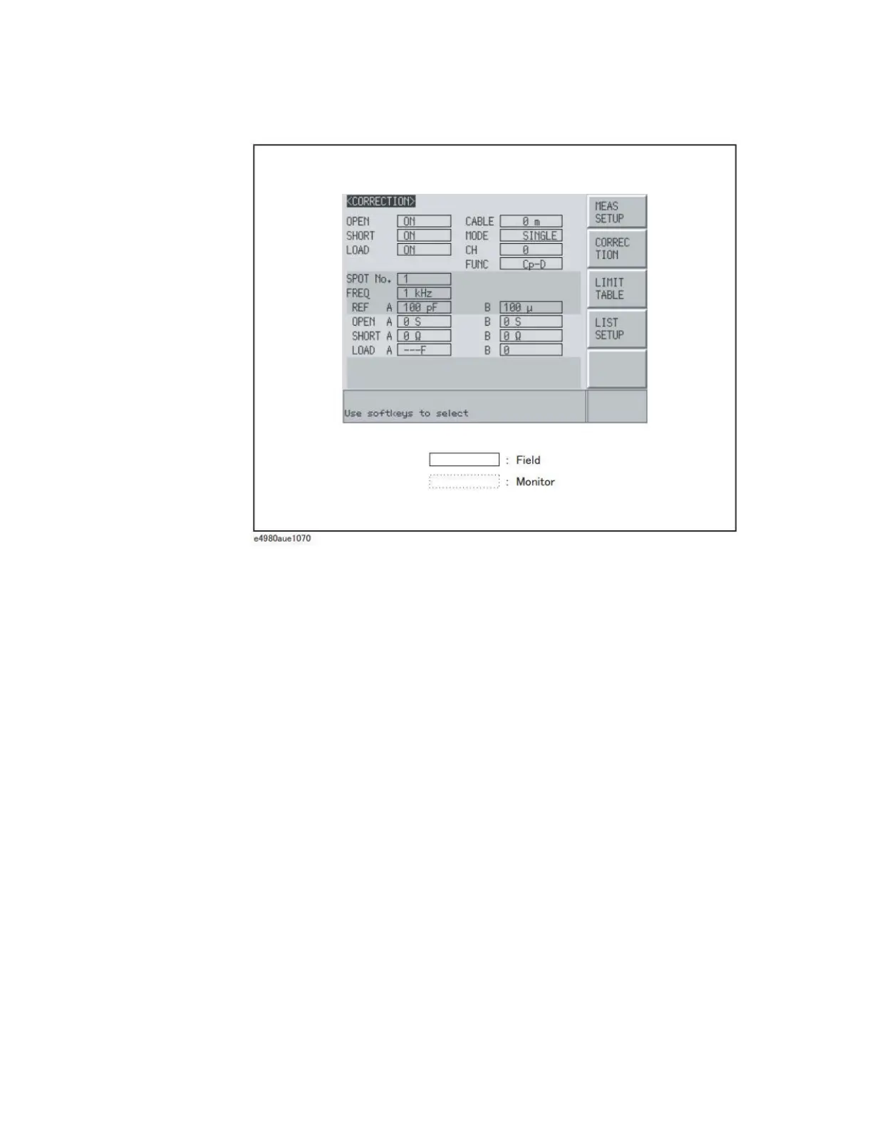 ON or OFF (with softkeys) in the OPEN, SHORT and LOAD fields on the