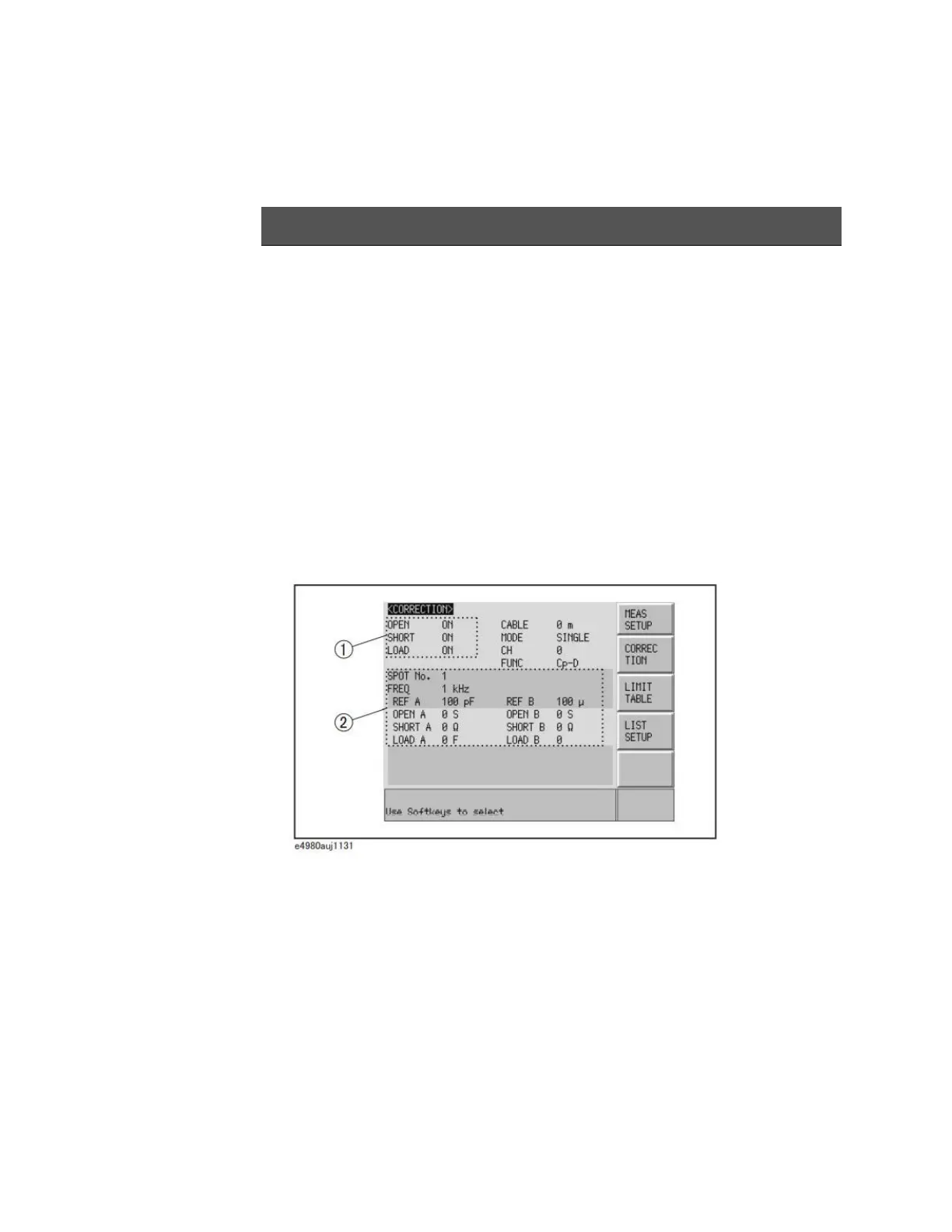 Figure 4-13 shows the CORRECTION page and how the open/short/load
