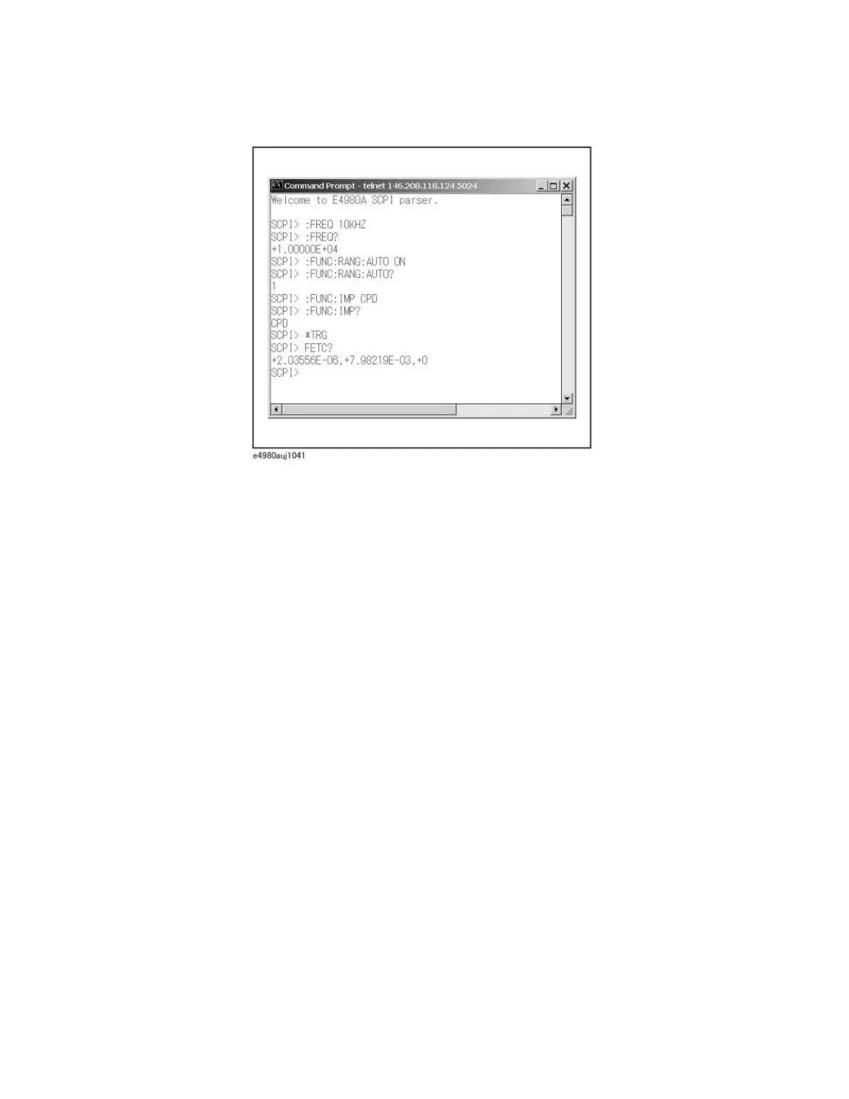 the E4980A/AL. The telnet prompt appears. Type “quit” at the telnet prompt