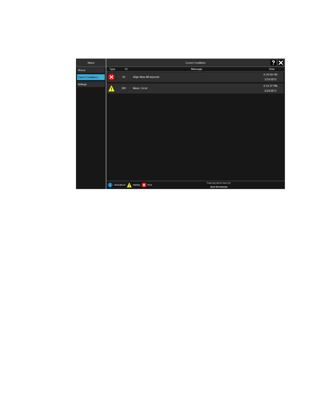 Touching a condition message expands the display of that message. Touching again
