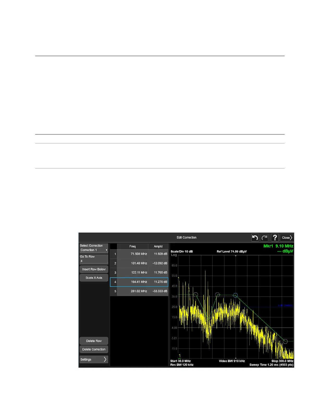The Correction Graph embedded in the Edit Correction dialog lets you edit the
