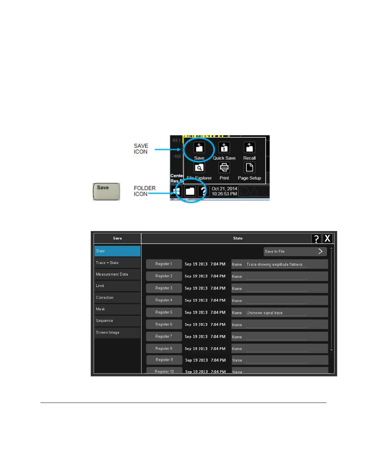 Example: :MMEM:STOR:STATe <filename>