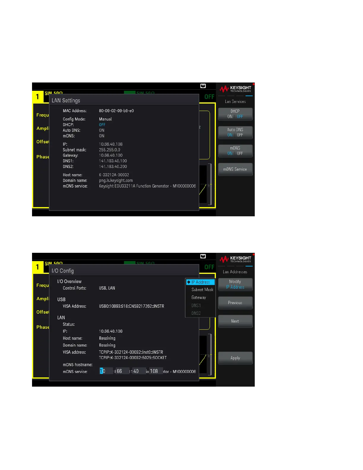 Appuyez sur [Back] > Addresses > Modify pour configurer l’adresseIP, le masque de sous-réseau et l’adresse de pas-
