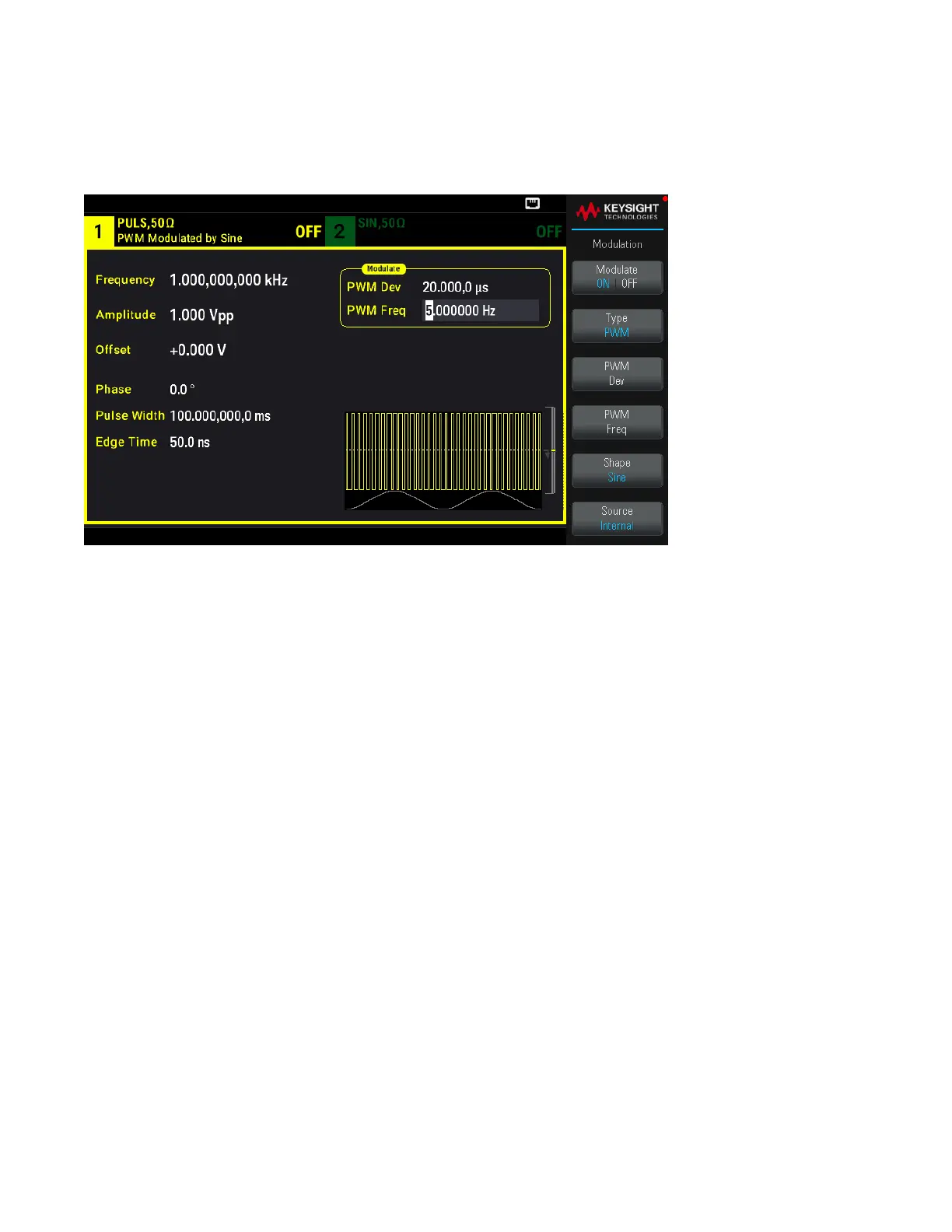 Appuyez sur la touche Shape pour sélectionner la forme du signal modulant. Pour cet exemple, sélectionnez un