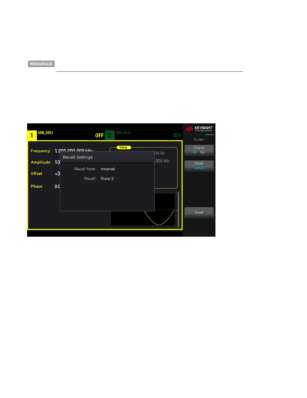 Appuyez sur Recall, puis choisissez parmi les différentes configurations: State 0, State 1, State 2, State 3 ou State 4.