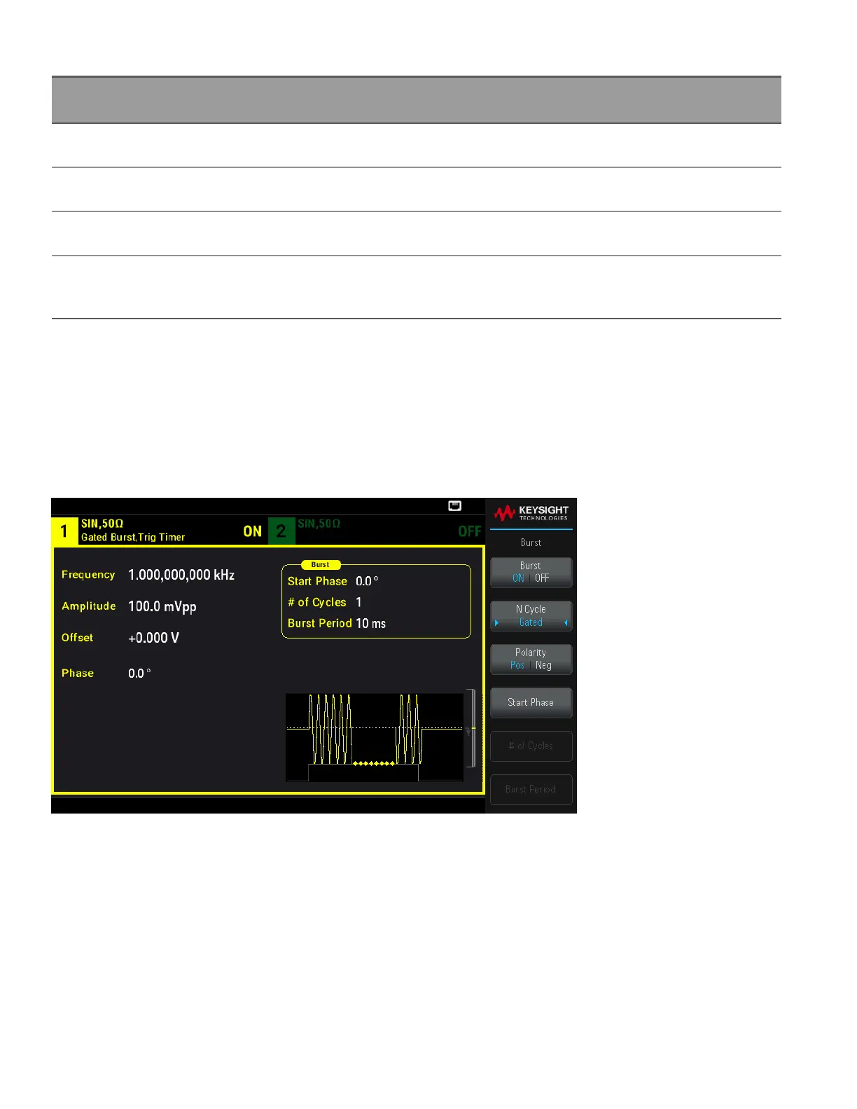 disparo, el número de ciclos especificado por el recuento de ráfagas se emite a la frecuencia de la forma de onda. En