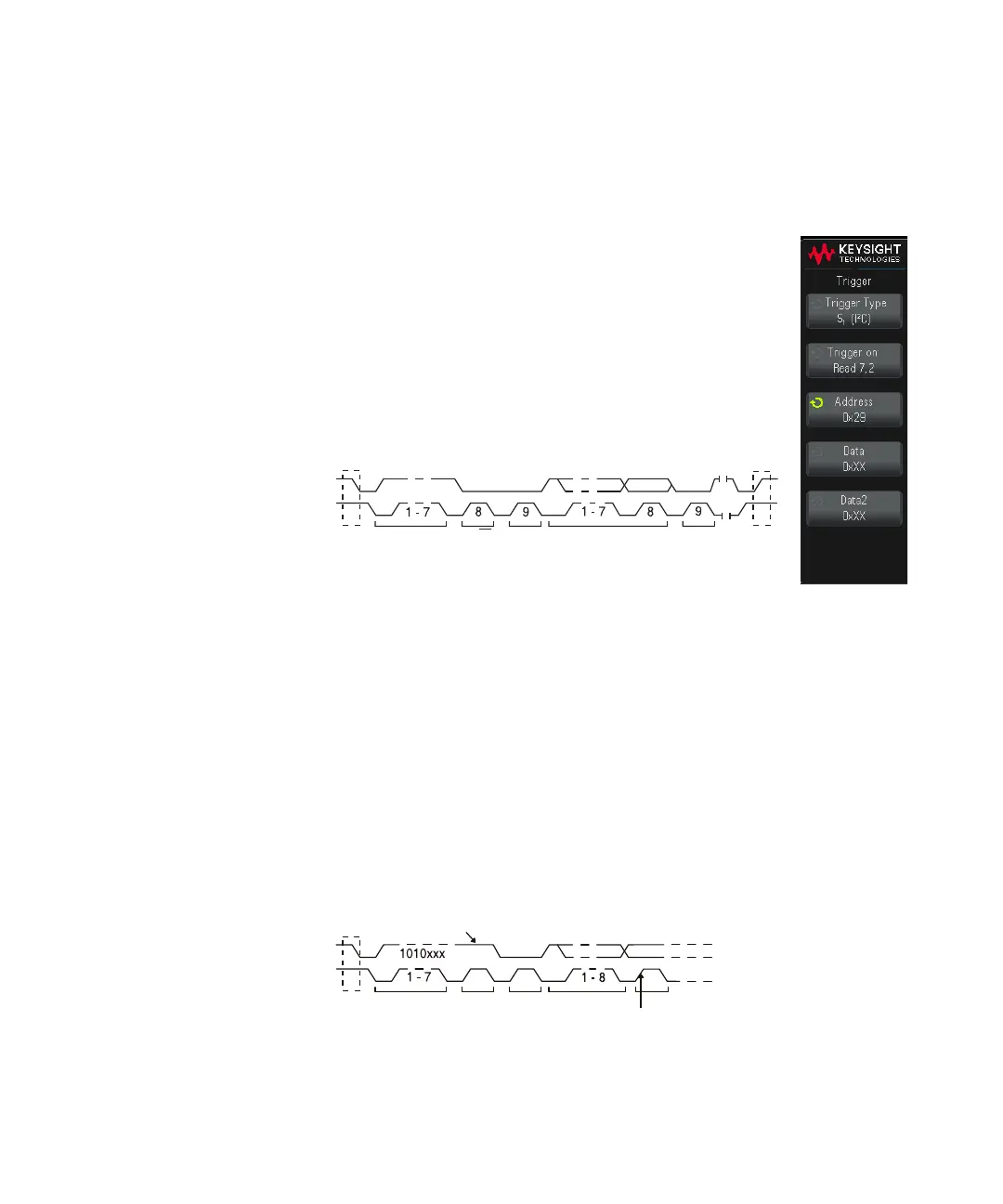 • Missing Acknowledge— The oscilloscope triggers when SDA