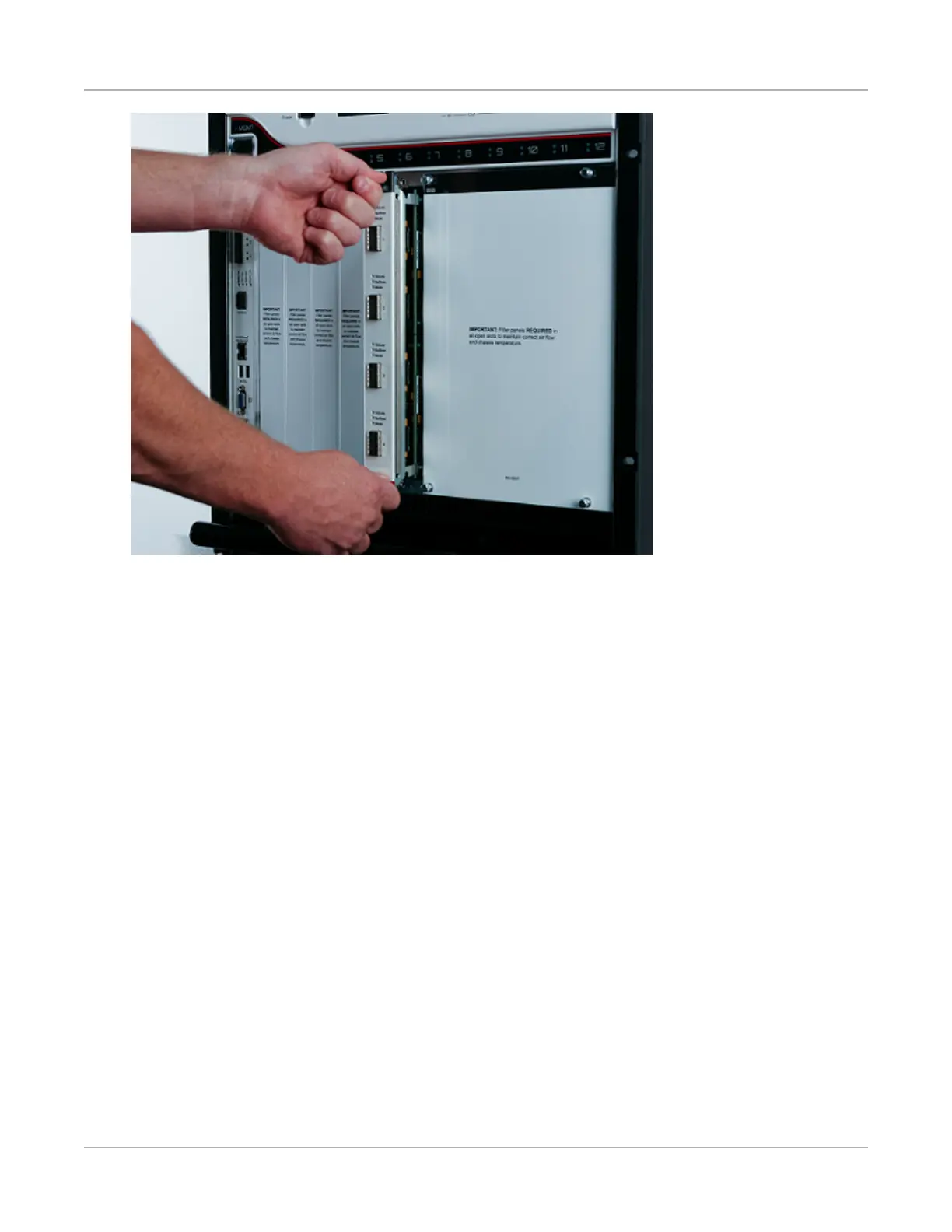 3. Grip the front of the load module and pull it out of the chassis (see Figure: Grip Front of Load