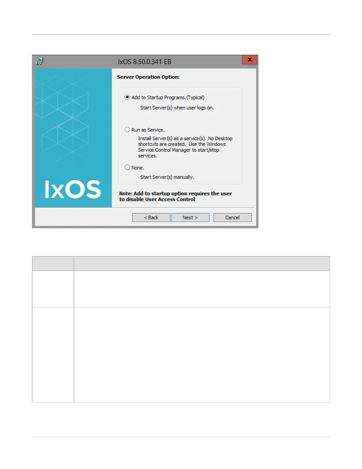 If this option is selected, the server computers run as a Windows service. There are