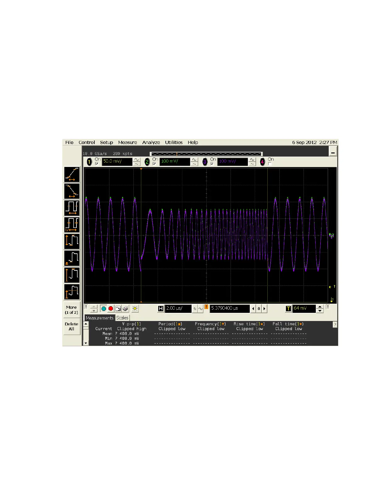 The following picture shows a start and stop of frequency sweep. Additionally, the
