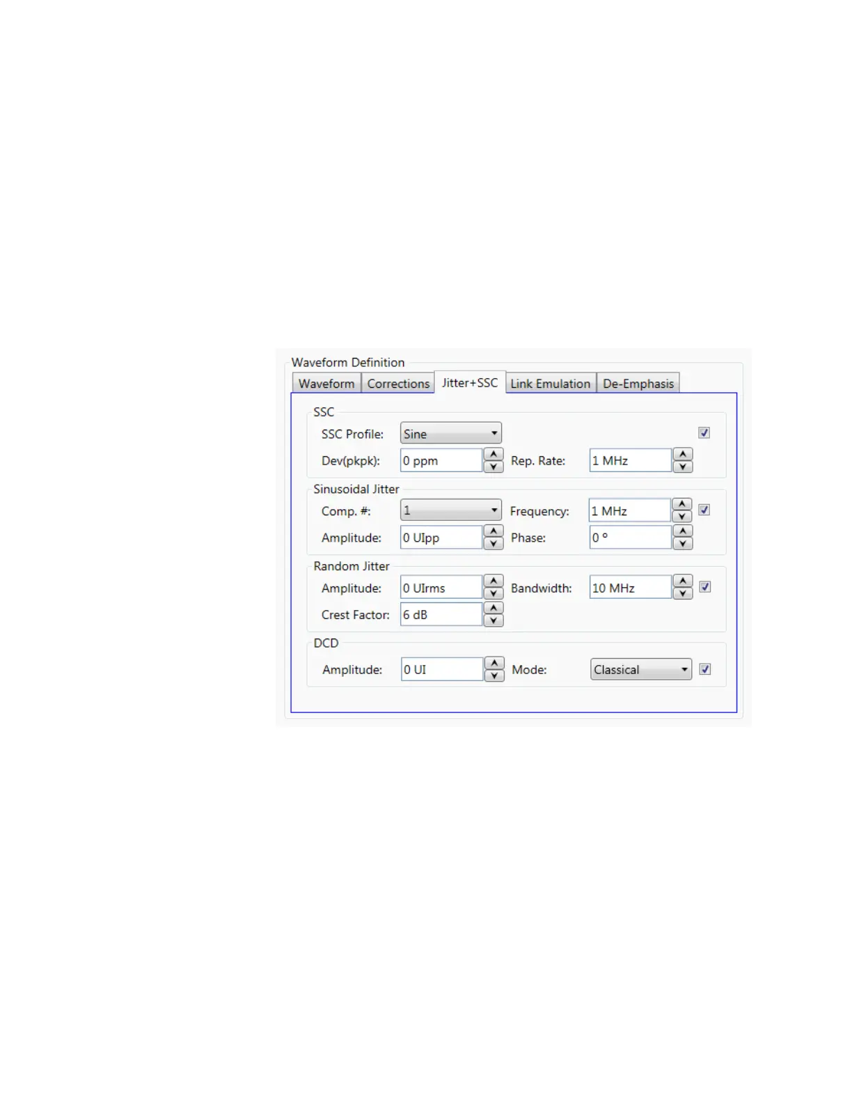 Sinusoidal Jitter Section: Up to ten components of sinusoidal jitter can be
