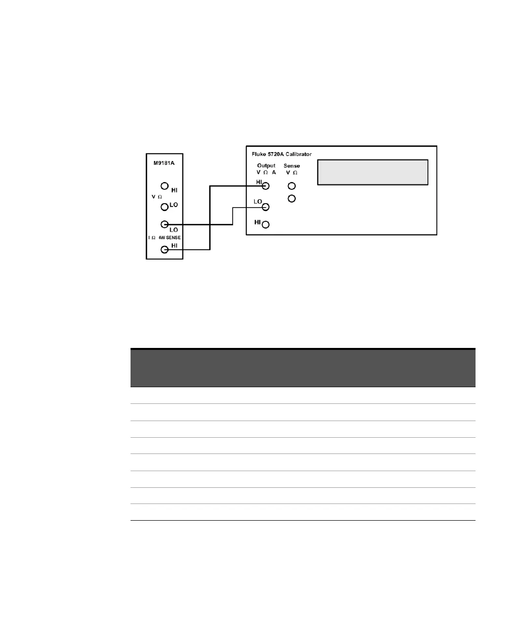 2 Connect the calibrator to the input terminals of the DMM, as shown below.
