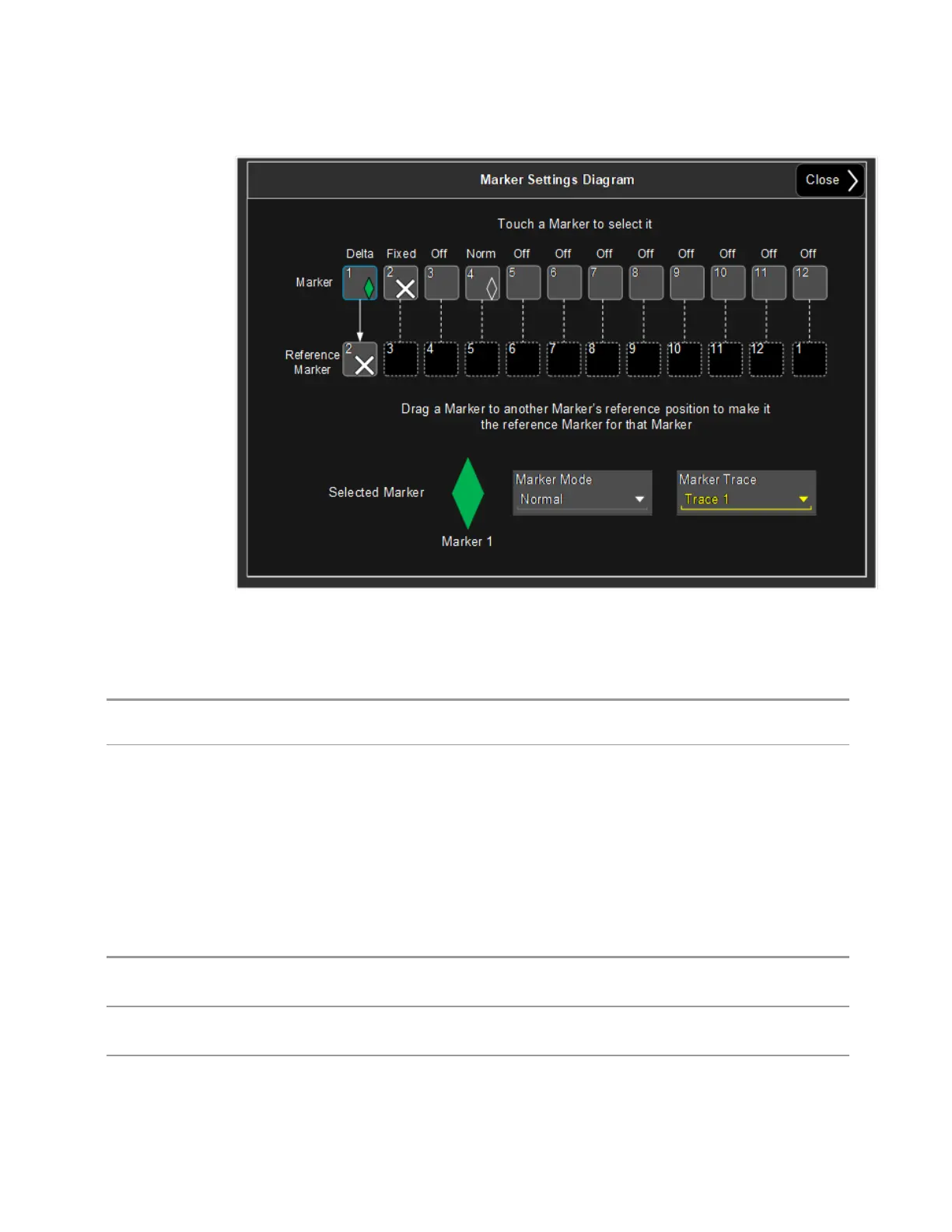 the trace that marker is on) and the X Axis value of the marker being moved (in the