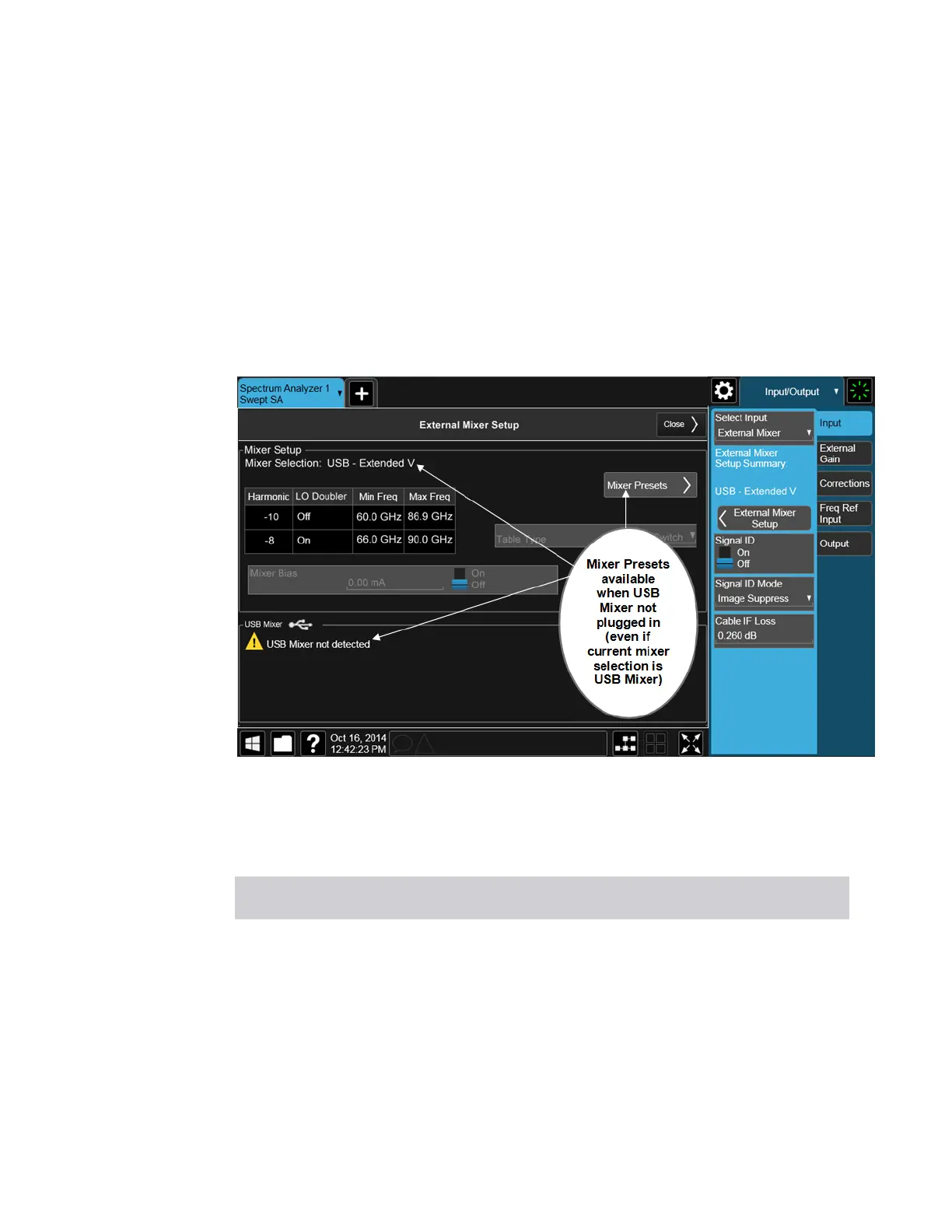 When recalling an instrument state, if a Keysight USB Mixer is plugged into the