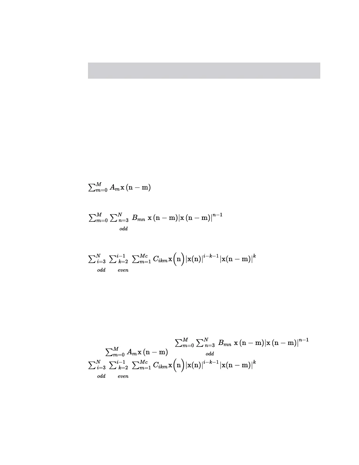 The next [(N-1)/2*(M+1)] terms are nonlinear memory ones: