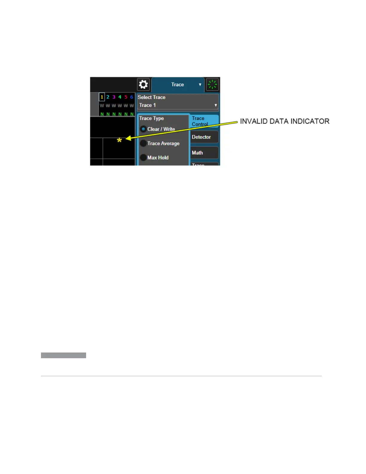 are changed, the Invalid Data Indicator will display as long as that trace remains in