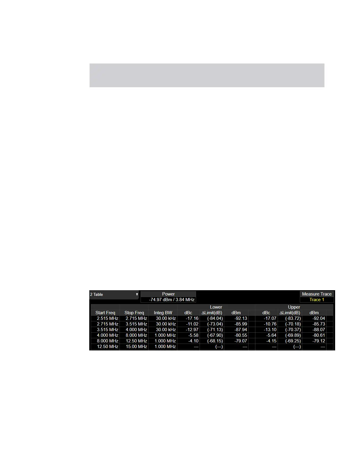 Lower Δ Lim dB Minimum margin from limit line which is decided by Fail