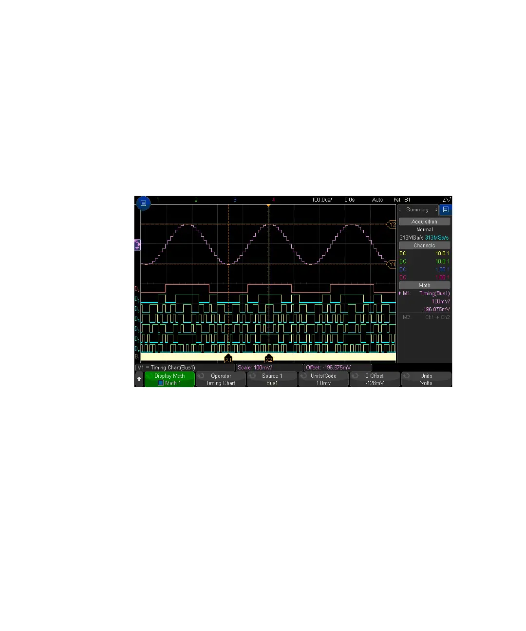 The Chart Logic Bus Timing function displays bus data values as an analog