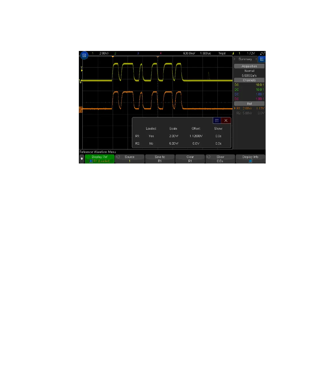 Once reference waveforms are displayed, you can adjust their skew.