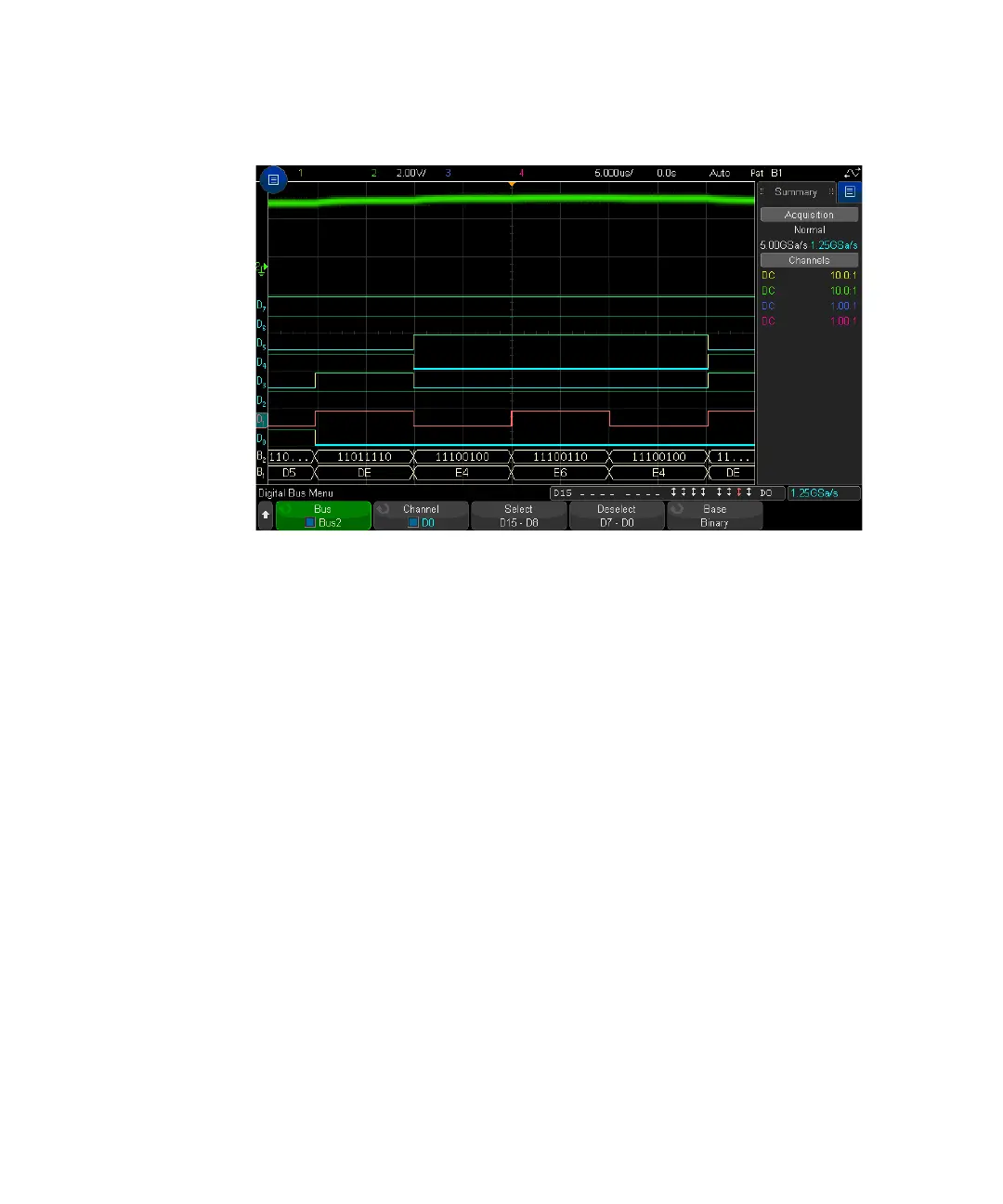 2 Press the cursor Mode softkey and change the mode to Hex or Binary.