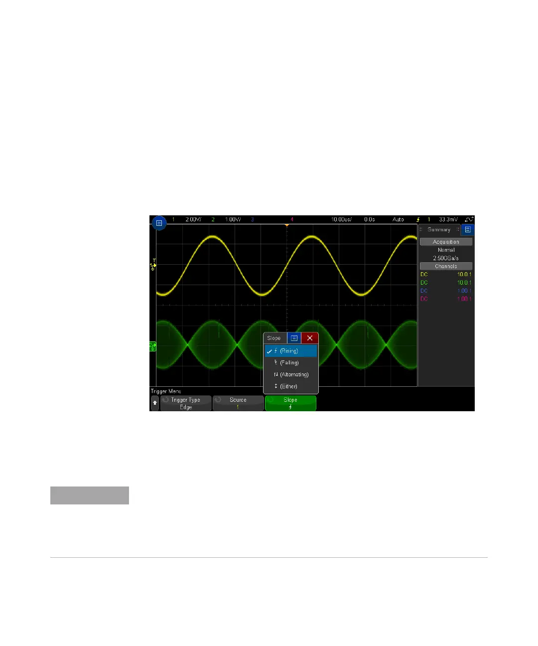 The easiest way to set up an Edge trigger on a waveform is to use Autoscale.