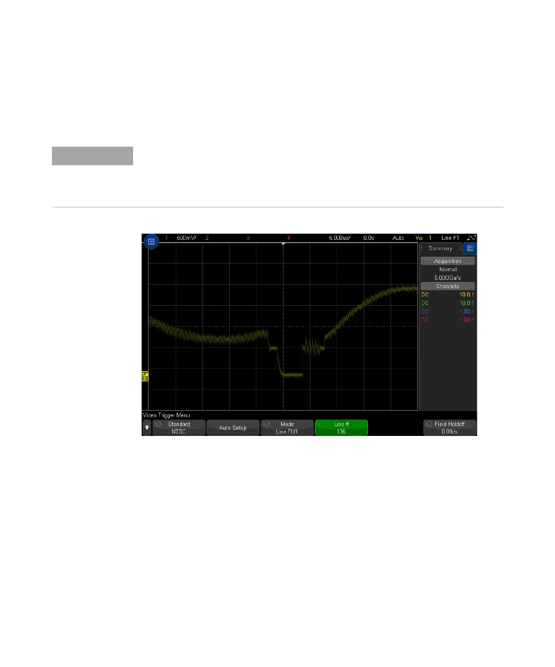 All Lines is selected as the Video trigger mode, the oscilloscope will trigger on all