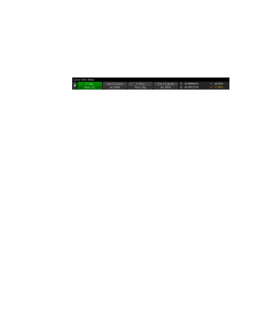 • Ratio (%) — when selected, use the Use YCursors softkey to set the current Y1