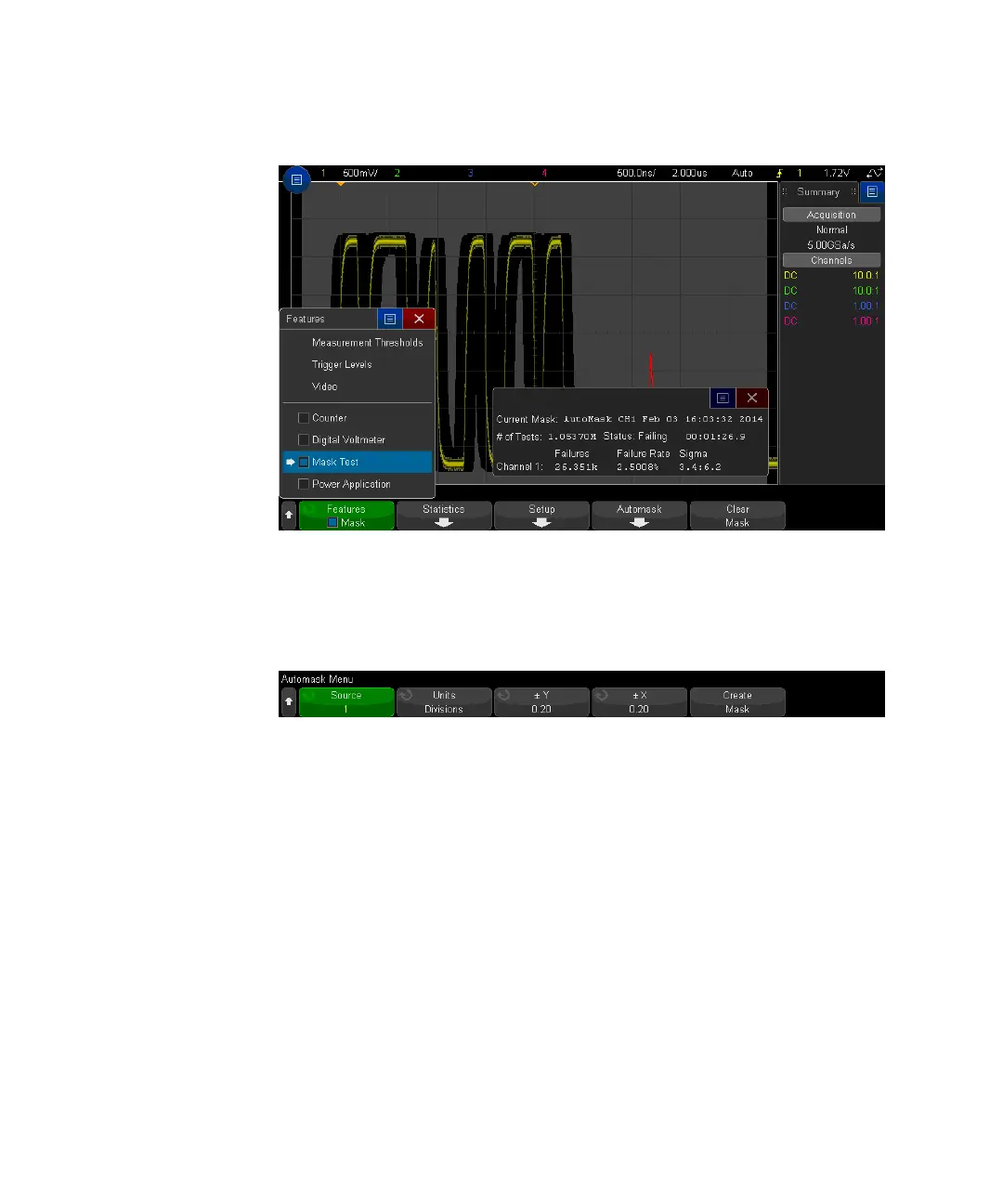 6 In the Automask Menu, press the Source softkey and ensure the desired analog