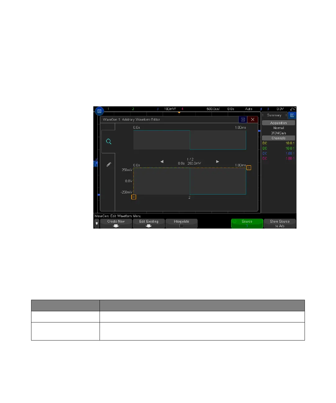 2 Use the softkeys in the Edit Waveform Menu to define the shape of the arbitrary