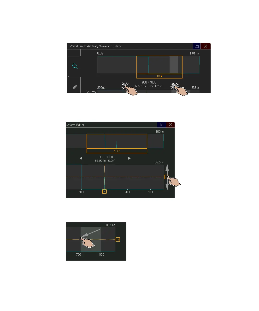 To select a points region, drag across the upper or lower waveform display: