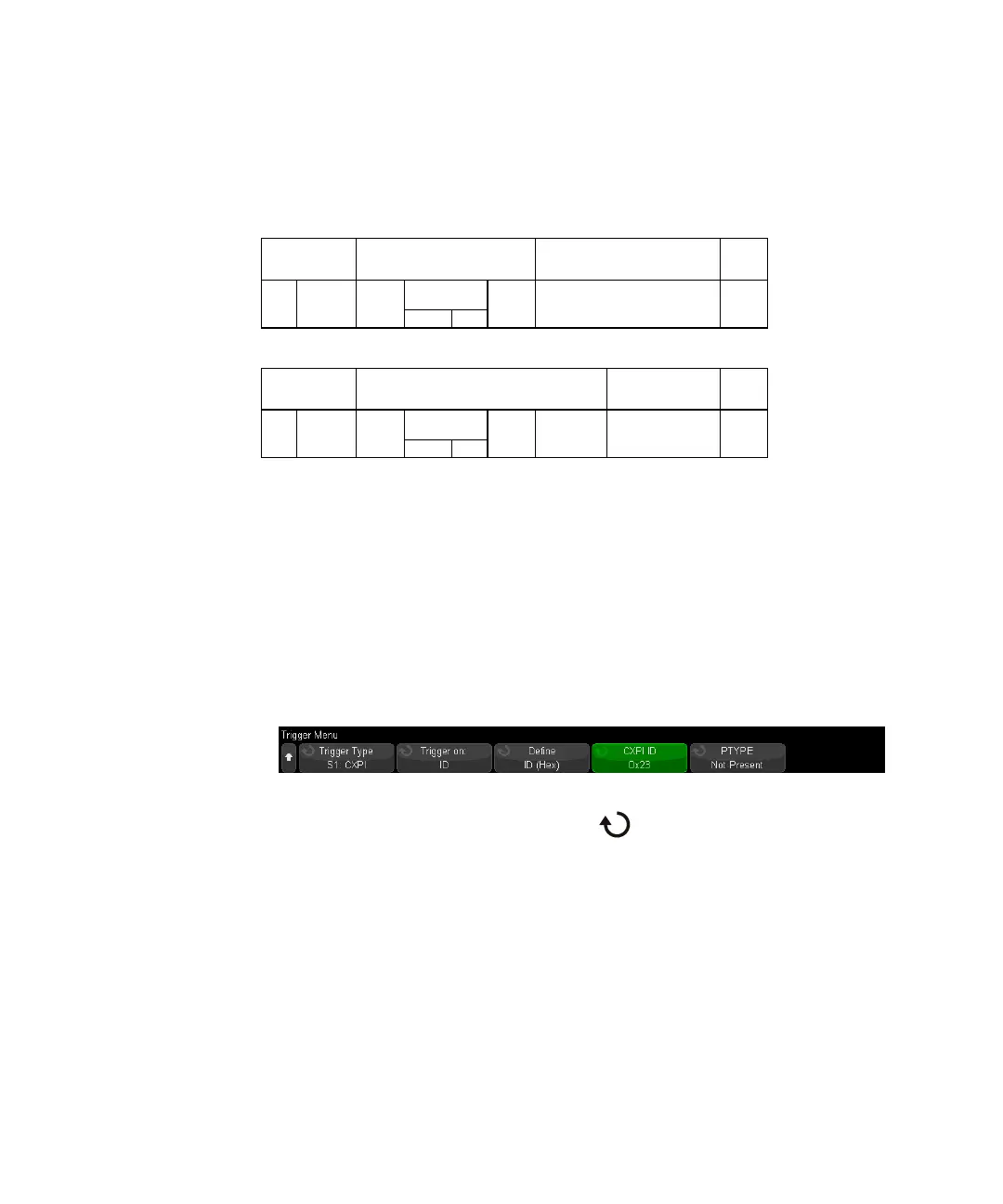 3 Press the Trigger on: softkey and use the Entry knob to select the CXPI