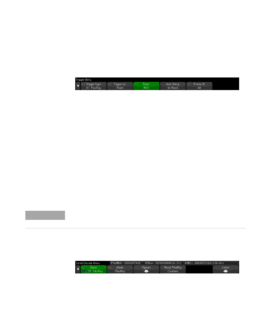 For FlexRay triggering setup see “FlexRay Triggering" on page 428.
