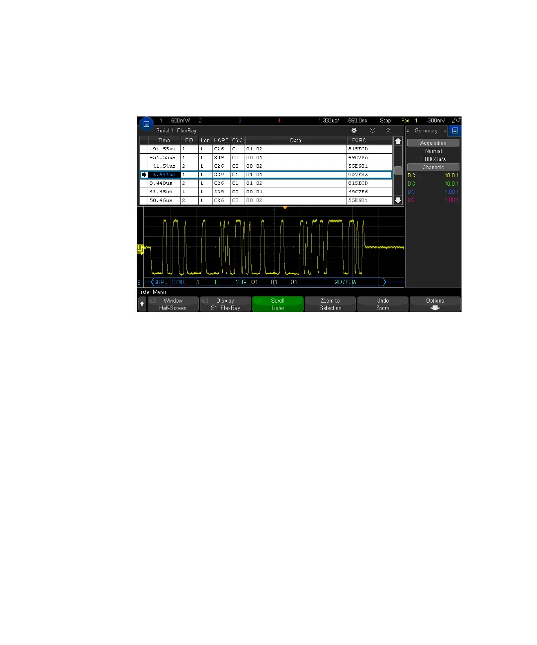FlexRay data in the Lister. You can use the [Navigate] key and controls to navigate