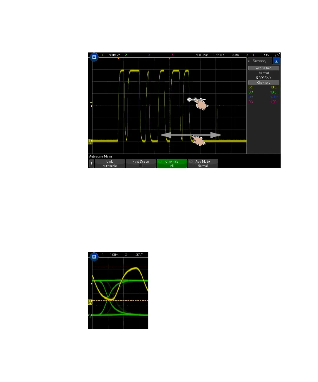 To select waveforms, tap them. The waveform closest horizontally to the tap