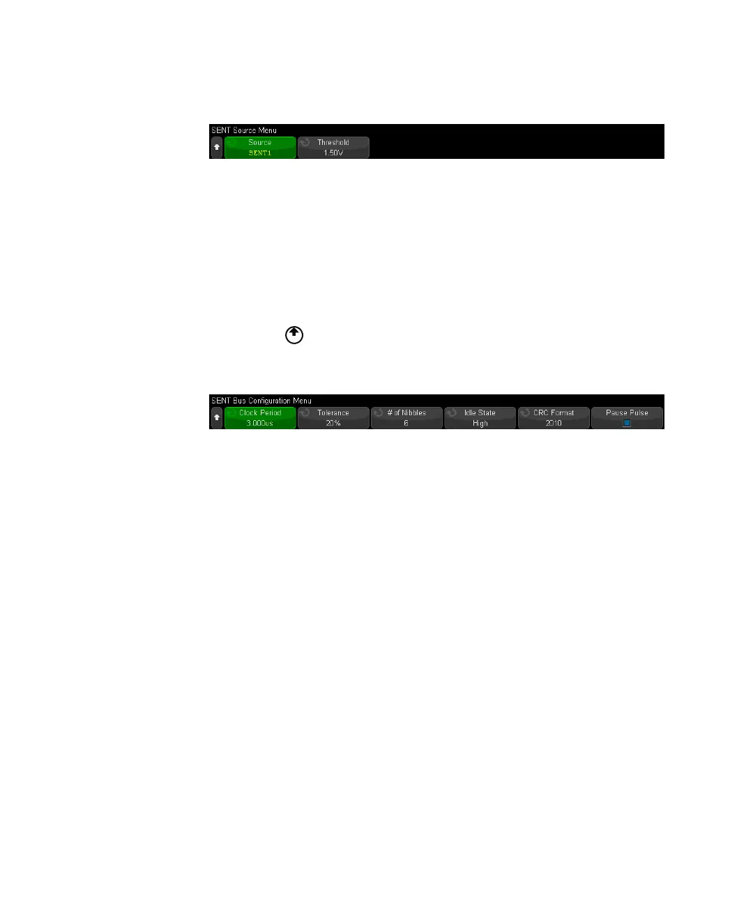 6 Press the Bus Config softkey to open the SENT Bus Configuration Menu.